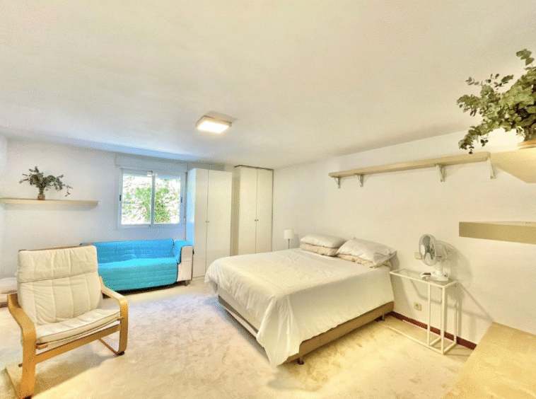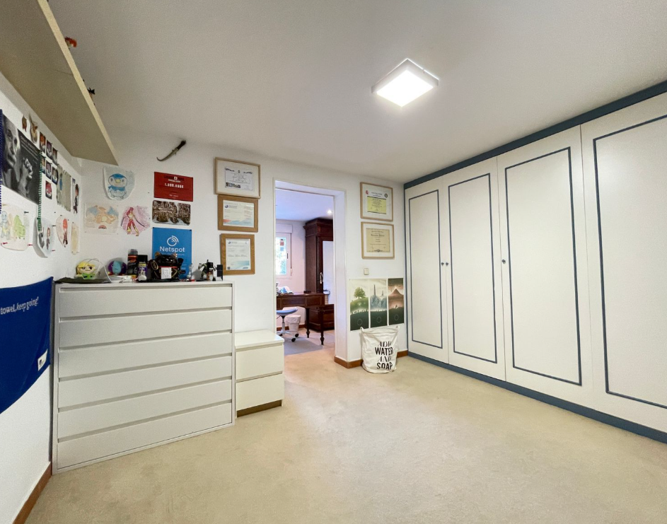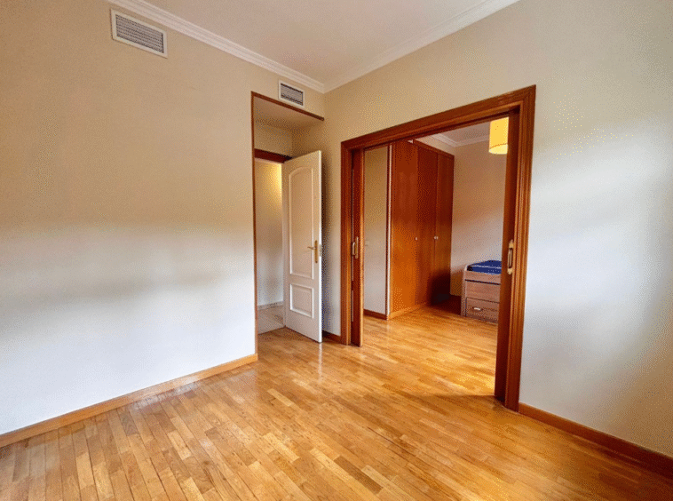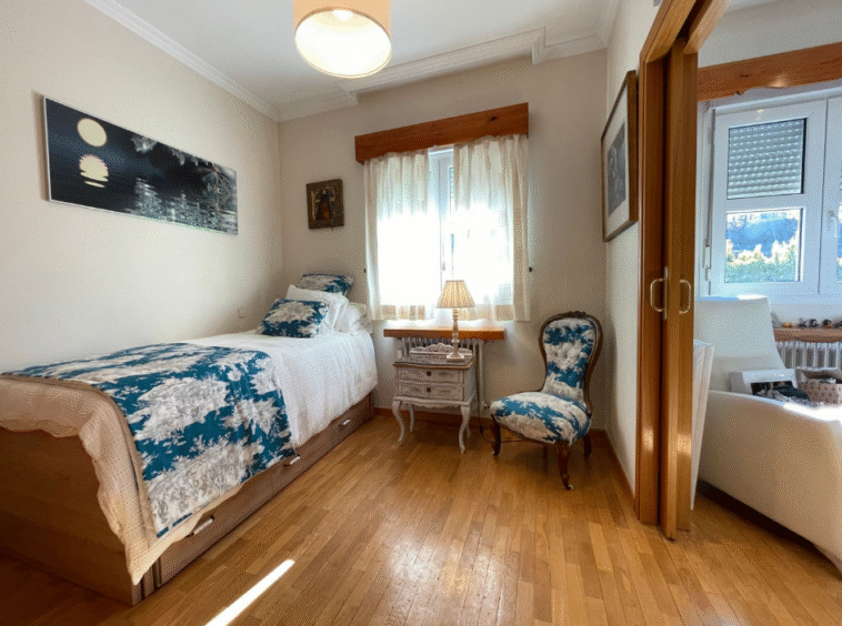 También en la planta principal está el dormitorio principal con vestidor y salida del porche. Y otros dos dormitorios unidos por una puerta corredera y un baño completo.