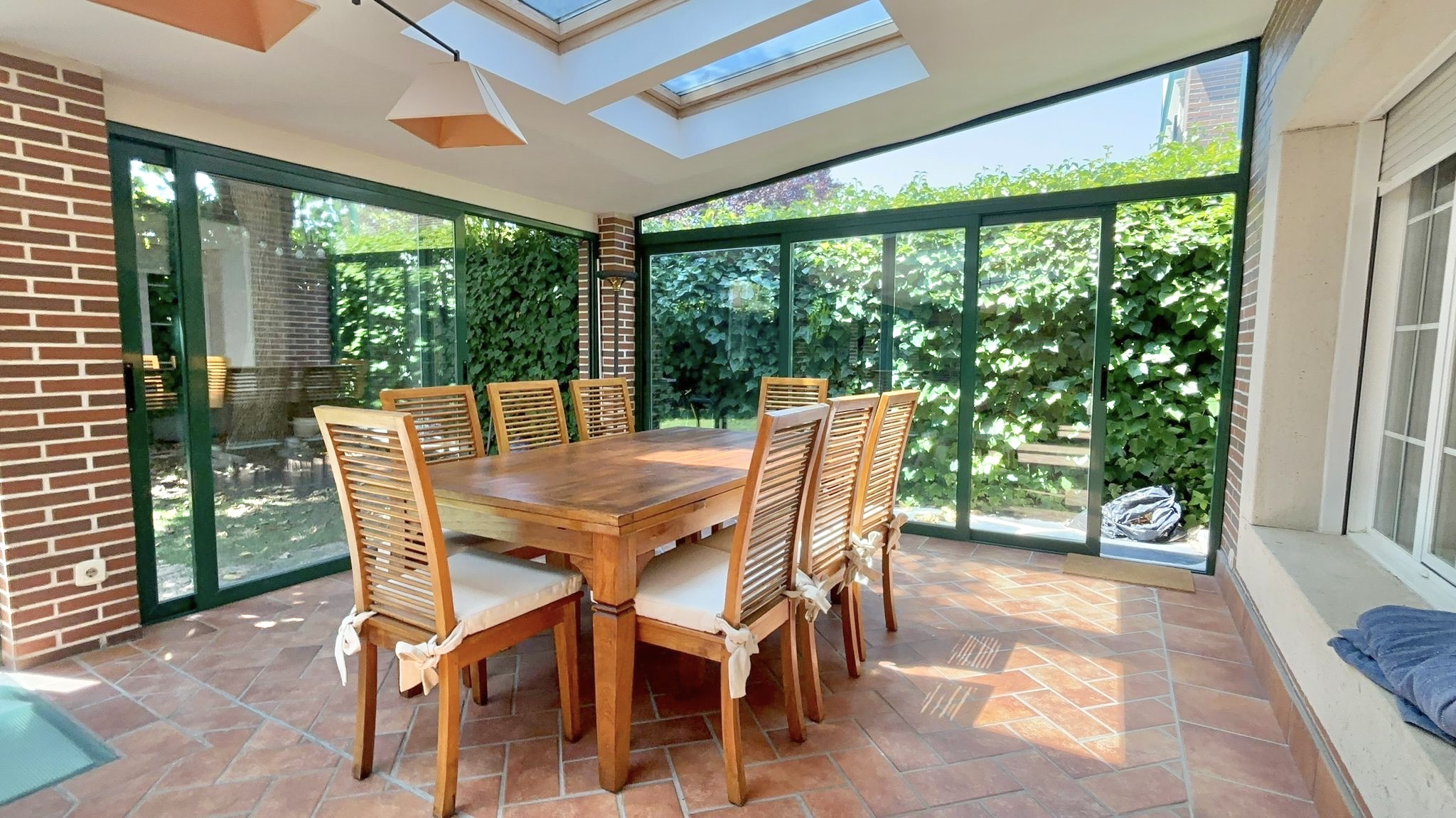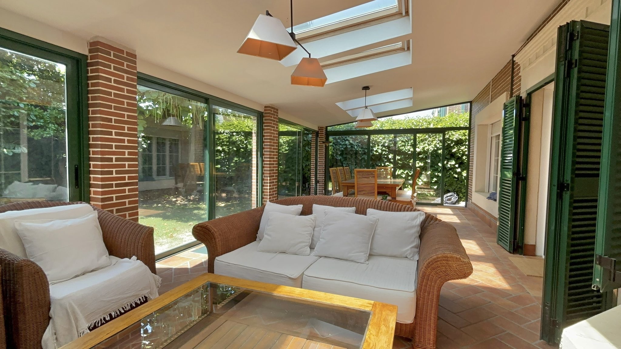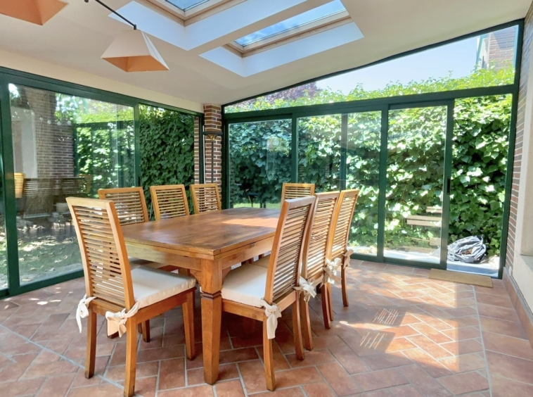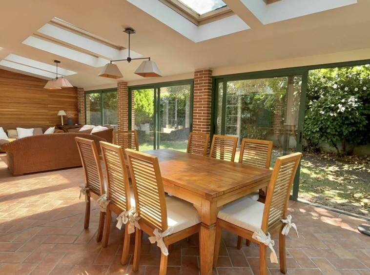 •Planta principal: Cocina moderna con zona de comedor, equipada con electrodomésticos de alta gama. Despacho, amplio salón con comedor independiente y acceso directo al jardín privado con porche cubierto y cerramiento metálico desmontable, ideal para disfrutar todo el año.